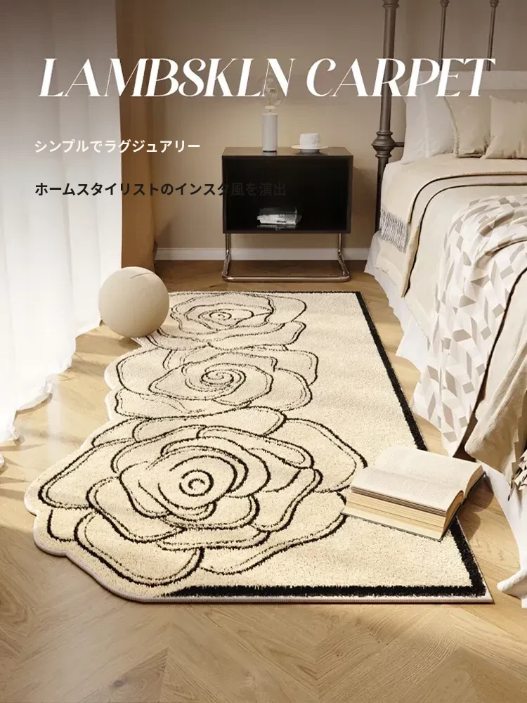 RUGオリジナルデザイン バラの花モチーフ 高級感漂うベッドサイドカーペット 寝室や女の子のお部屋にぴったり!主寝室の床下に最適なフロアマット