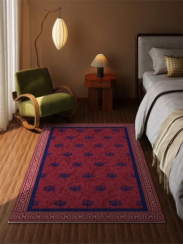 RUGオリジナルデザイン 赤色レトロスタイル 寝室用ラグ 高級感溢れる新中式ベッドサイドマット お手入れ簡単な洗濯不要のラグ